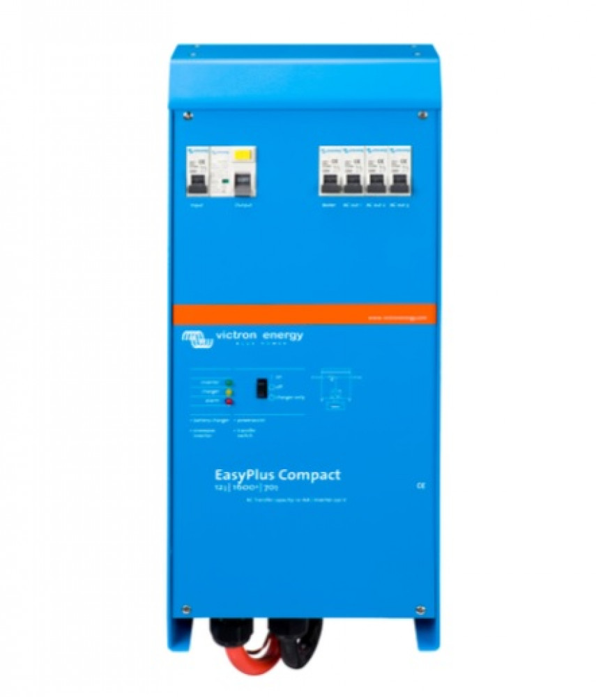 De EasyPlus is een multifunctioneel energiesysteem bestaande uit een krachtige sinus-omvormer, een geavanceerde acculader, een supersnelle AC-omschakelaar en een AC-verdeler in een enkele lichtgewicht- en compacte behuizing.
