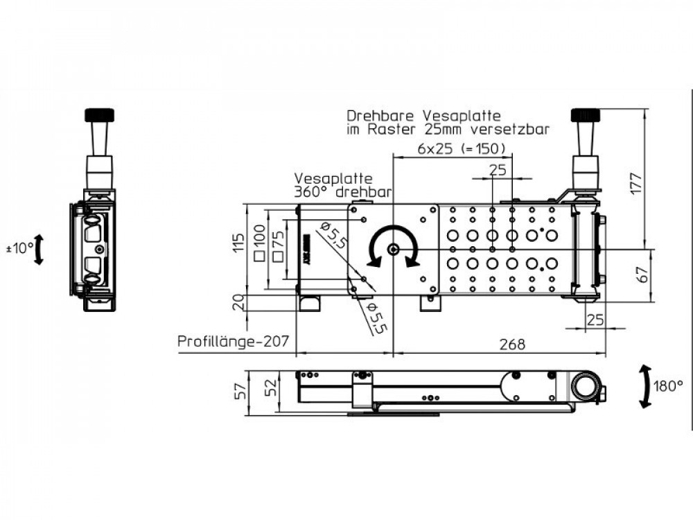 Met de Sky 20W wandsteun kan een tv gemakkelijk aan de wand van een caravan of camper bevestigd worden. De muursteun is 180° draaibaar.